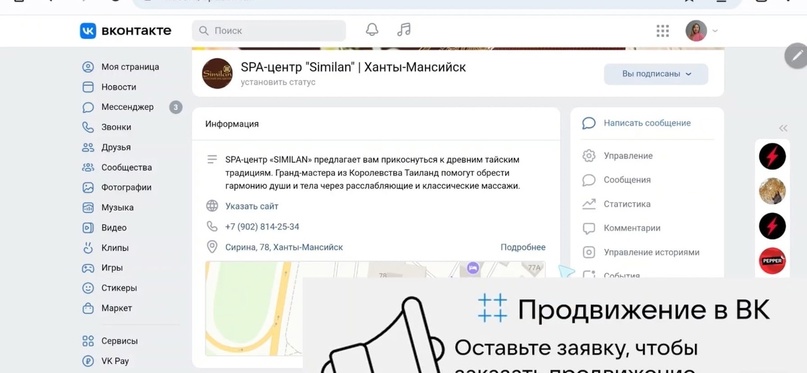 Настройка сообщества Вконтакте для СПА-салона в Витиме